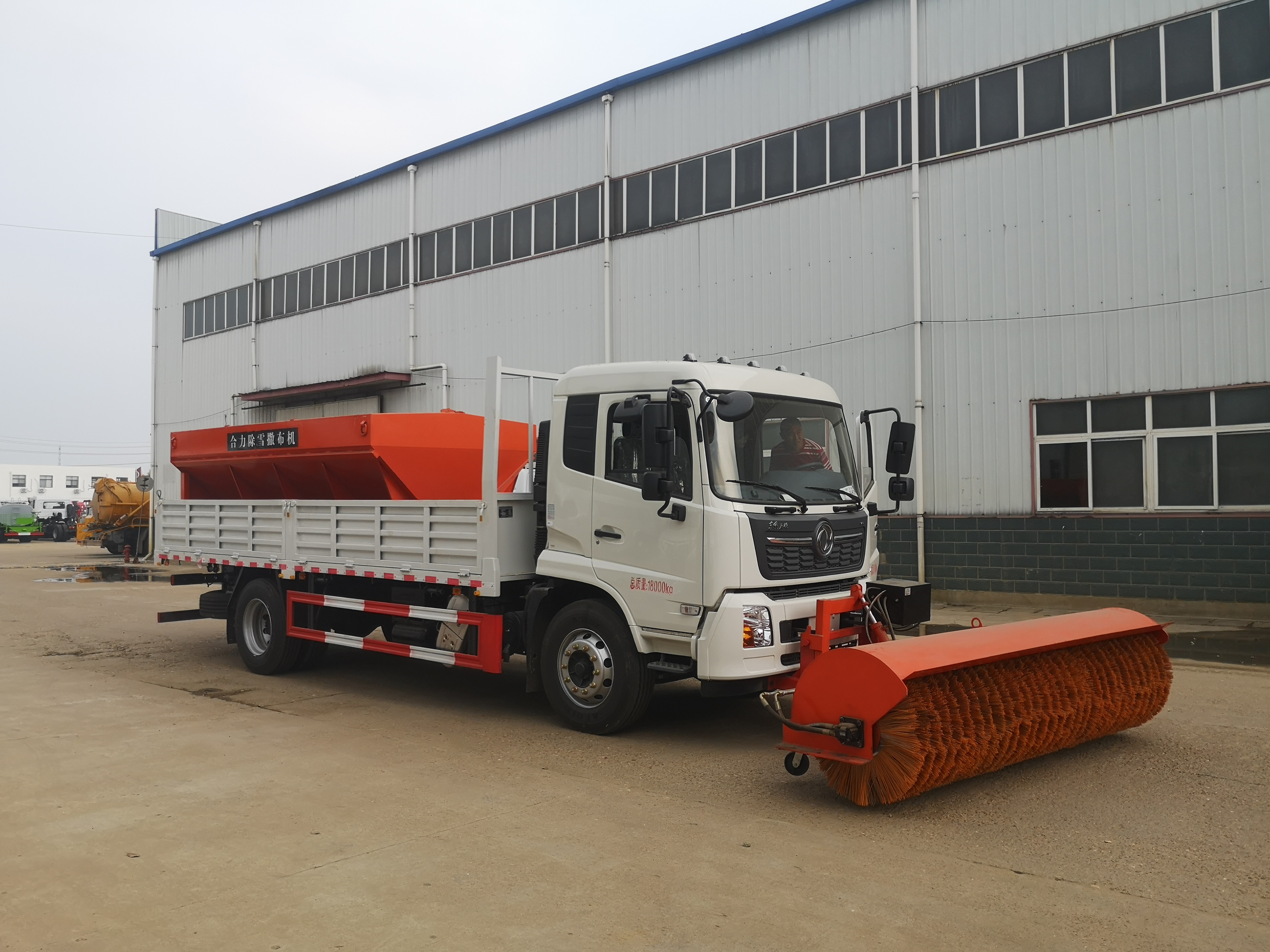 4、设计合理:除雪铲结构合理,可将雪推向一侧,并能起到抛雪功能,除雪铲设防雪棚,具有防止雪飞溅到作业车挡风玻璃上,以免影响驾驶员视线。